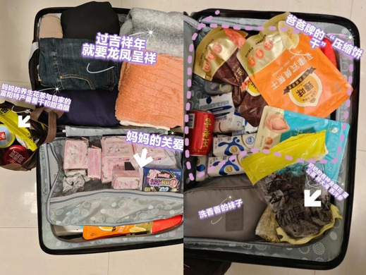 沉甸甸的行李箱里装满了家人的关心