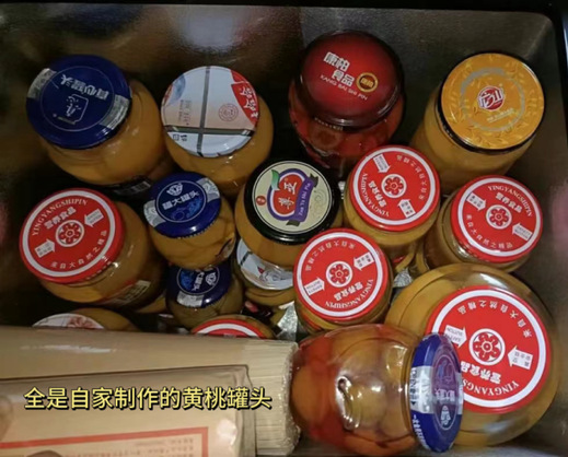 一罐罐黄桃是家人一起做好封起来的