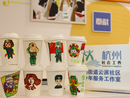 在第61个全国“学雷锋纪念日”到来之际,我院组织学生开展了“‘锋’华正茂恰少年”学雷锋活动。当天,同学们来到杭州白杨街道云滨社区,服务杭州第19届亚运会的经贸“小青荷”通过讲述自身经历和体会,把“奉献、友爱、互助、进步”的志愿服务精神的种子播撒到小朋友心中。他们还教小朋友们在环保杯上绘制雷锋图像,一笔一画描绘榜样形象,共同体悟“服务人民、助人为乐”的雷锋精神。