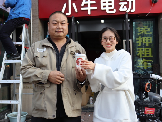 活动结束后,志愿者和小朋友们一起将装满热茶的手绘杯送给了辛勤工作的保安、环卫工人和外卖小哥...在寒冷的天气里为他们带去温暖,将“爱”传递下去。