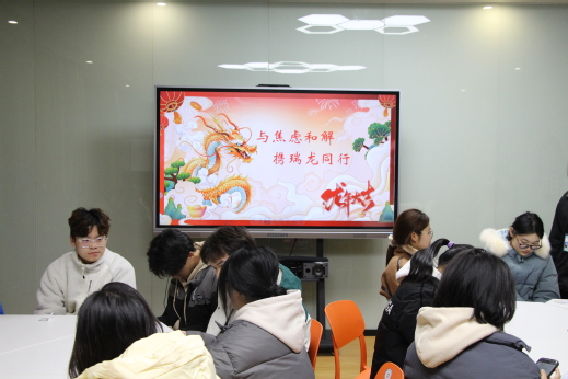 活动伊始,主持人引导同学们在纸条上写下自己焦虑的原因,通过交换纸条、相互交流、给出建议,在倾听与共情中拉近了彼此的距离。活动设置了“emoji猜成语”“龙的绕口令”“含龙消消乐”“找出所有龙”四个解压游戏,同学们踊跃参与,现场欢声一片,大家在放松身心的同时,也结交了志同道合的朋友。