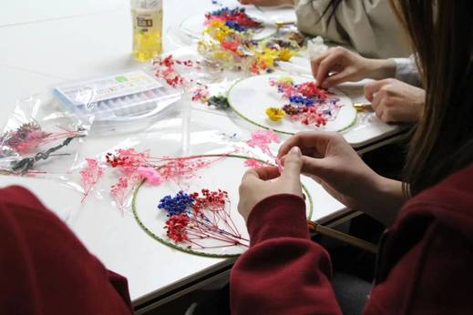 活动伊始,主持人从理论知识出发,介绍了“踢猫效应”,一种因坏情绪的传染导致的恶性循环,启示同学们要成为情绪的主人,而不是受情绪所控。随后,主持人组织大家开展团扇装饰活动,同学们以扇为体,以花为笔,用胶水将干花贴于团扇,在拣花、搭配、粘贴中渐渐放松心情,寻找内心的宁静。完成团扇装饰后,同学们在扇背写上了近期令自己迷茫或焦虑的原因,大家交换团扇,互相分享建议与看法,在倾诉中让情绪得到释放。最后,主持人分享了常见的焦虑情绪产生的原因,不规律的作息方式、差异大的学习进度、考证考级的忙碌都有可能导致负面情绪的出现,并建议大家保持规律健康的生活作息,跟随自己的节奏,合理科学安排时间,度过充实的大学时光。