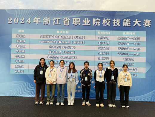 3月23-24日,由浙江省教育厅主办的2024年浙江省职业院校技能大赛(高职)“业财税融合大数据应用”赛项在浙江商业职业技术学院举行。在学院领导的高度重视下,周肖肖、孙斌、莫佳妮、郑宝凤四位指导老师带领刘菲飞、梅丹妮、李佳洁、李杰、连安妮、洪雨欣、林露露、李曜宇八名同学,组成两支学生参赛队,与来自全省51支参赛队的204名选手同台竞技。经过510分钟鏖战,两支队伍分获省赛二等奖和三等奖。郑宝凤、周肖肖、平音、包根梅四位老师组成的教师参赛队获三等奖。