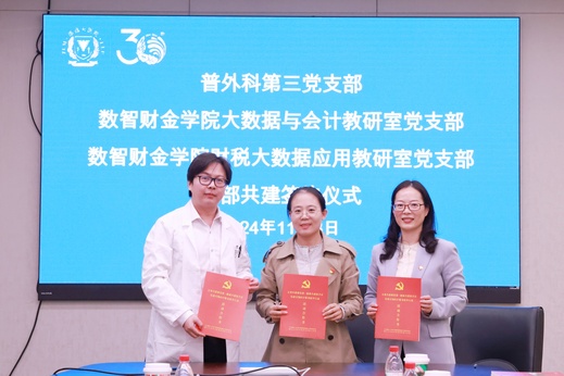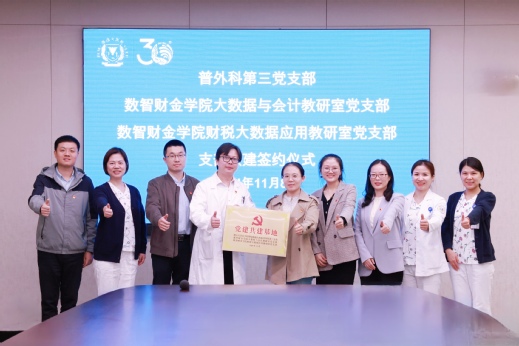 随后,大数据与会计教研室党支部与普外科第三党支部,财税大数据应用教研室党支部与普外科第三党支部,进行了党建共建协议的签约仪式和授牌仪式。