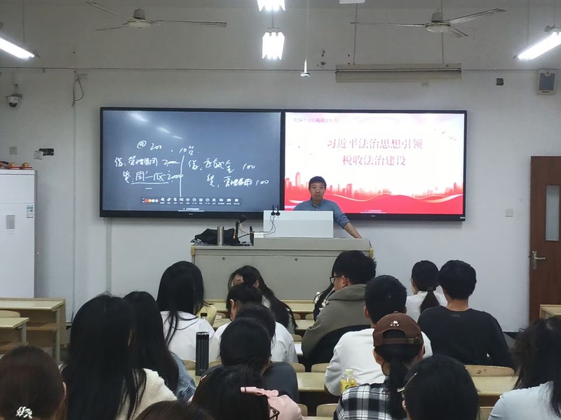 支部组织党员老师深入班级,开展税收政策宣传活动。党员老师们结合实际,重点宣传诚信纳税、税收法制等内容,使学生们更清晰地认识到,税收法治公平是国家治理能力现代化的标尺。只有坚守税收法治公平,才能实现“征税有据、用税有度、管税有序、纳税有为”的良性循环。