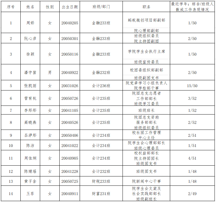 根据《中国共产党发展党员工作细则》(中办发〔2014〕33号)、《浙江经贸职业技术学院发展党员工作办法》有关规定,bat365正版唯一官网学生党支部于2025年4月21日召开支部大会票决通过,经党总支审议,党委备案同意后,将确定周娇14位同志为发展对象,并予以公示,接受广大党员、群众监督。
