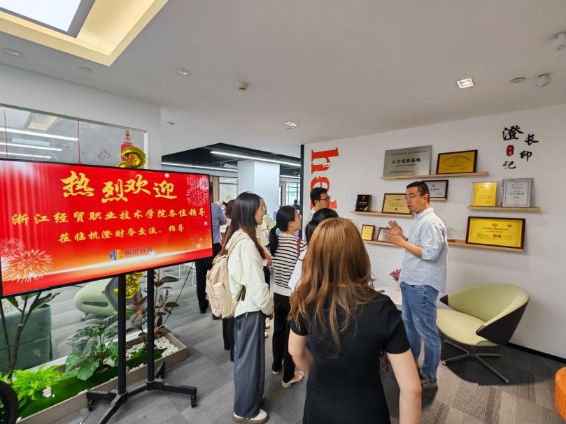 杭澄财务总经理郭鹏、人力资源负责人明璇对学院一行的到来表示热烈欢迎。郭鹏高度认可学院毕业生的专业素养与职业适应性,希望未来双方能在人才培养方案制定、实习基地建设等方面开展更深入的合作,共同推动校企合作迈向新台阶。明璇系统阐释了企业青年人才培养体系与岗位能力模型。